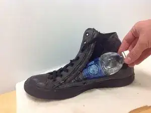 Заполните обувь каким-либо предметом, например, полунаполненной бутылкой с водой или газетой, чтобы сохранить ее форму.