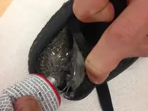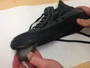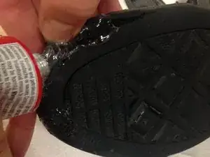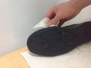 Подождите около 2 минут, чтобы клей застыл перед повторным соединением подошвы.