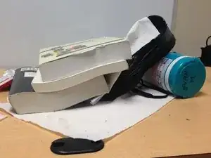 Положите тяжелые предметы на ту часть обуви, которая повторно соединяется.