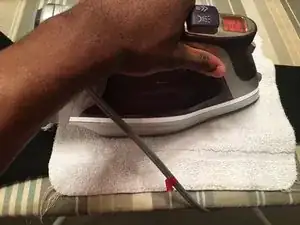 Возьмите нагретый утюг и прижмите его к полотенцу на 10–15 секунд.