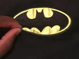 Уберите полотенце и убедитесь, что заплатка теперь вышита на ткани.