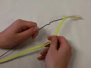 Продолжайте проталкивать проволоку через капюшон к другому отверстию.