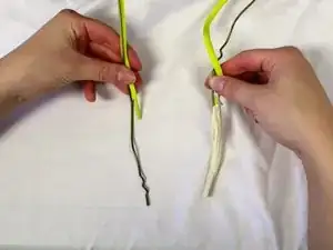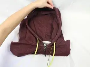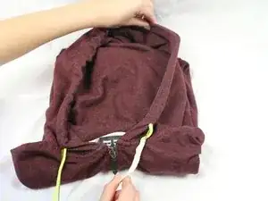Приклейте конец разогнутой вешалки к одному концу шнура толстовки.
