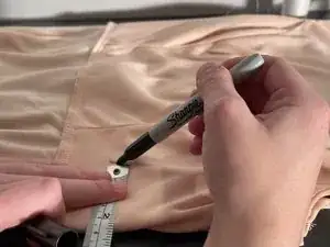 Используйте маркер, чтобы отметить количество ткани, которое вы собираетесь ушить по обхвату груди и талии с обеих сторон.