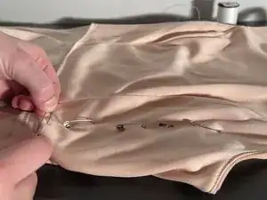 Начните с нижней части нового подола и протяните иглу через платье, пока не дойдете до другой стороны.