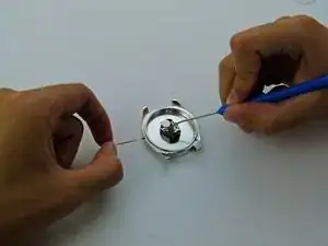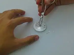 Снова используя пинцет, установите минутную стрелку в центр циферблата.
