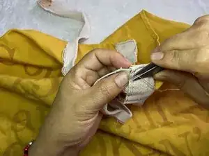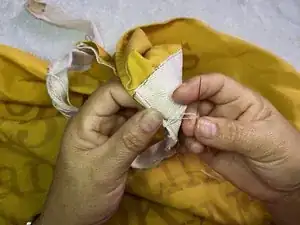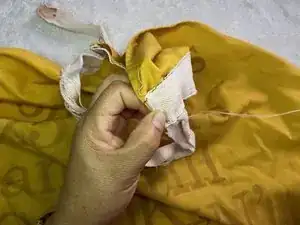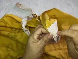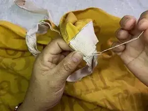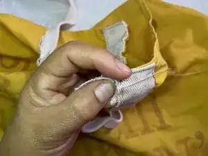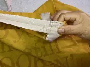 В этом руководстве показано, как заново прикрепить порванную или оторванную лямку фартука.