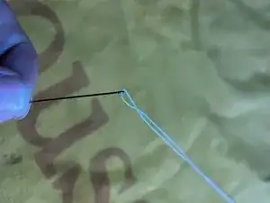 После введения завяжите узел, чтобы нитка не смещалась. Потяните нитку как можно дальше, но так, чтобы можно было завязать узел.