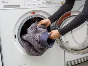 Заполните стиральную машину и добавьте ваше мягкое моющее средство в соответствии с инструкциями на упаковке продукта. Закройте все кнопки, застежки, молнии или липучки перед стиркой. Это предотвратит их зацепление за другие волокна и растяжение изделия.