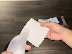 Снова очистите поверхность бумажным полотенцем и изопропиловым спиртом, подготовив стекло часов к полировке.