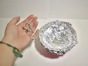 Вылейте эту чашку горячей воды в миску, покрытую фольгой, вместе с браслетом.