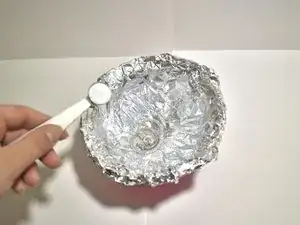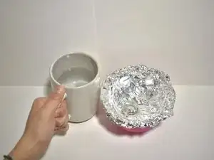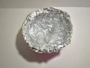 Возьмите любую небольшую миску и накройте её средним листом алюминиевой фольги.