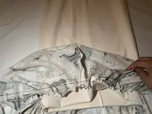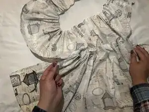 Присоедините более длинную собранную ткань к более короткой, прострочив их вместе.
