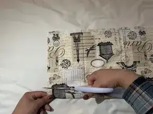 Разрежьте ткань на два куска, при этом один должен быть немного больше другого.