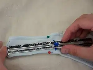 Прострочите по линии, отмеченной булавками.