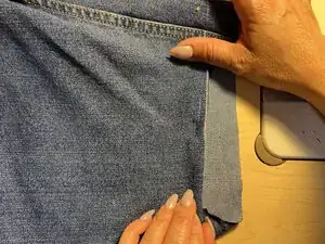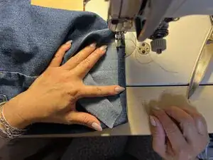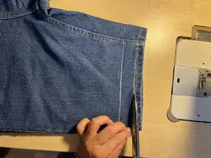 Поместите сложенный край одной ноги под пресс-фут швейной машины.
