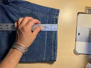 Используйте линейку, чтобы измерить и отметить желаемую длину шорт специальным мелком для ткани.