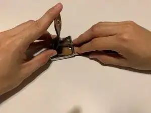 С помощью отвертки удалите все винты с конца пряжки ремня.