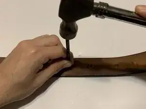 Поместите ремень на рабочую поверхность, в которую можно вбивать гвоздь.