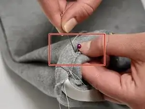 Шейте ТОЛЬКО по новым булавкам, размещённым на предыдущем шаге. Не прошивайте по первому ряду булавок, сделанному изначально.