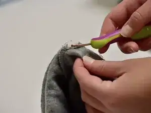 С помощью распарывателя швов удалите строчки вдоль подгиба низа брюк.
