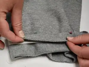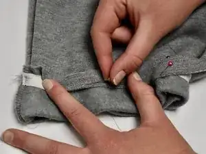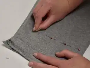 Заколите булавками нижнюю кромку нового подгиба, чтобы зафиксировать ткань.