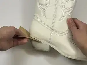 Приклейте полоску на другую сторону сапога так, чтобы обе части сходились сзади.