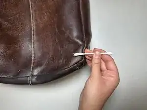 Это руководство предназначено для незначительных повреждений кожаной сумки и не охватывает ремонт отверстий и/или других серьёзных повреждений.