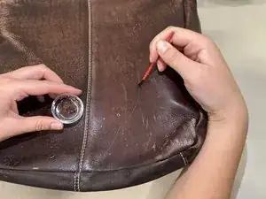 Приложите краску для кожи к сумке, чтобы определить наилучшее цветовое соответствие.