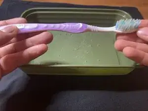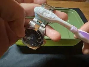 Используйте абразивную сторону губки, чтобы почистить часы, следуя тем же шагам, что и в Шаге 3.