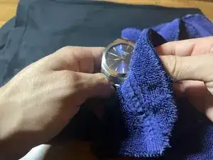 Высушите часы микрофибровой тканью, сжимая пальцы вместе в движении вперед-назад.