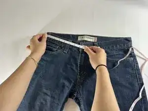 С помощью рулетки измерьте пояс джинсов от одного бедра до другого.