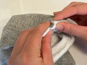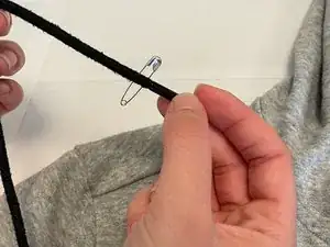Рекомендуется постирать худи и шнурок перед началом ремонта. Это гарантирует, что грязь не попадет в отверстие худи. Также лучше, чтобы кто-то не носил худи во время ремонта, чтобы легче было продевать безопасную булавку через худи.