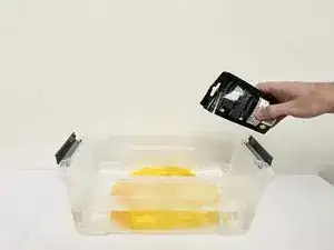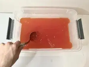 Перелейте воду в контейнер, достаточно большой для вашей обуви.