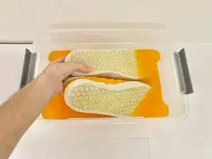 Полностью погрузите свою обувь подошвой вверх в контейнер с краской.