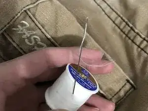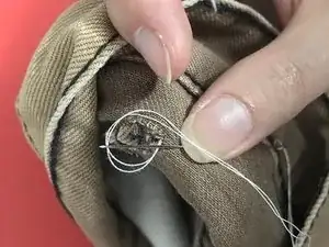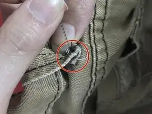 Обязательно не пытайтесь сделать ремонт, пока вы или кто-то другой носит брюки, которые будут отремонтированы, чтобы не уколоться швейной иглой при пришивании петли на этапах 4–5.
