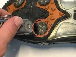 Извлеките каждый шип с помощью ключа Softspikes Ripper, поместив ключ в пазы шипа и поворачивая его против часовой стрелки.