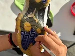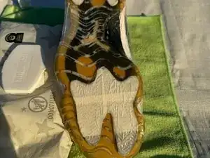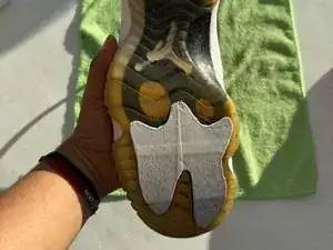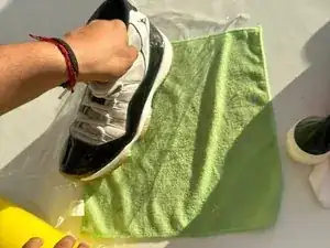 В этом конкретном руководстве используется модель Jordan 11 с прозрачными голубыми подошвами, но оно может быть применено к другим спортивным обувям, которые ранее были белыми или светлыми и пожелтели с течением времени.