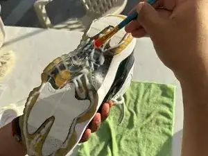 Используйте маленькую кисть, чтобы равномерно распределить его по подошве обуви.