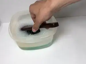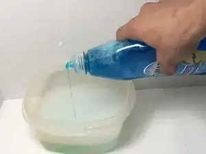 Сделайте смесь жидкого мыла и воды в небольшой миске.