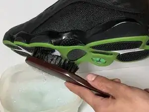 Используйте мягкую щетку с смесью мыла и воды, чтобы почистить грязь с подошвы обуви.