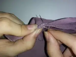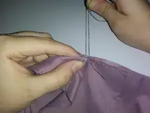 Если нитка окажется слишком короткой, вам нужно будет обратиться к шагу 8, чтобы правильно закрепить нитку на одежде. Затем возьмите вторую нитку и повторите шаги 1-3, прежде чем продолжить процесс шитья.