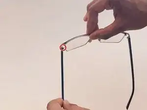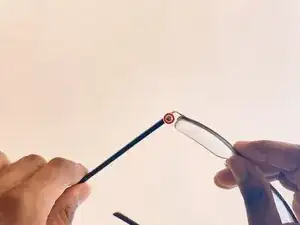 Удерживайте дужку и концевую часть очков вместе, чтобы отверстия для винта совпадали.