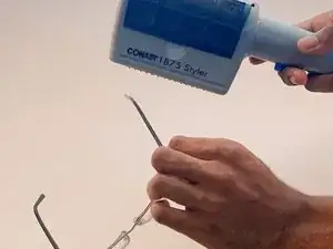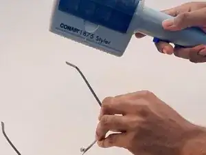 На средней температуре направьте фен на согнутую часть оправы, чтобы сделать её более податливой.