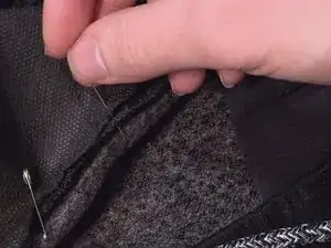 Удалите все швейные булавки или зажимы, которые удерживали карман, чтобы избежать травм.