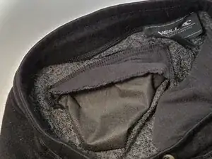 Вытащите подкладку поврежденного кармана, чтобы увидеть, как он прикреплен к брюкам.
