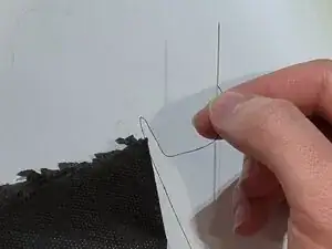 Проткните иголкой край ткани и протяните её насквозь, оставив небольшой отрезок нити с другой стороны.