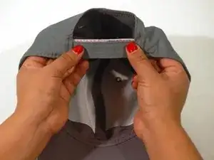 Убедитесь, что липучка полностью удалена, распарывая также сгиб внутри шапки.