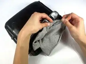 Иглой, подходящей для прошивания материала вашей сумки, пришейте подкладку прямым строчным швом по краю горловины сумки.