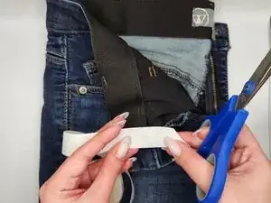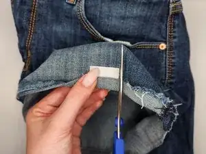 Снова проверьте, совпадают ли размеры клеящей ленты и кусочка денима.